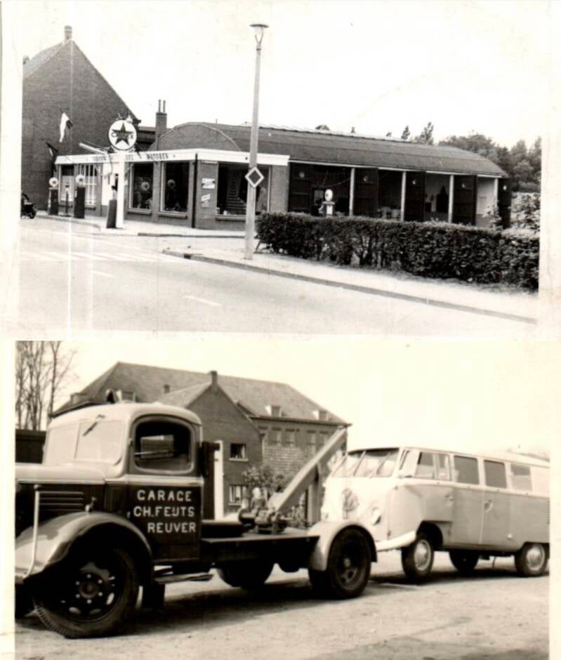 Foto's uit de oude doos van Frans en zijn familie. Op de foto's is het oude bedrijf van Charles Feijts - de vader van Frans - te zien. In 1954 werd het garagebedrijf gelegen aan de Rijksweg in Reuver overgenomen van de familie Aangenend uit Belfeld. Het tankstation waar velen jaren menig inwoner van gemeente Beesel en daarbuiten de auto van nieuwe brandstof voorzag, was er toen ook al.