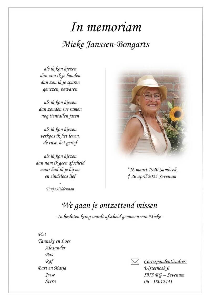Onze gedachten zijn bij Piet en de familie. We wensen hen ontzettend veel kracht en troost toe in deze moeilijke tijd.